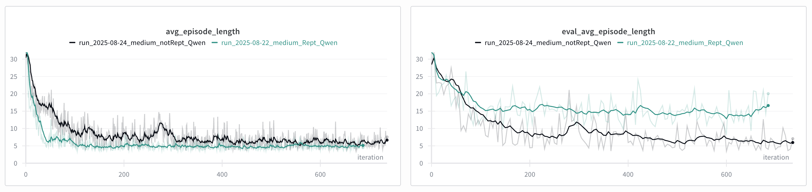 Gradient interference was not helpful. The value head was backpropagating gradients through the shared LLM backbone, essentially telling the language model to change its representations to make value prediction easier. By detaching the hidden states before the value head, I stopped this interference while still allowing the value function to learn from the LLM’s representations.
