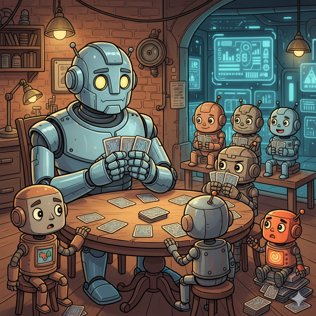 Partnership Coordination: Success demands seamless coordination with a teammate whose hand and intentions remain opaque. This creates a unique multi-agent learning problem where cooperation and competition must coexist in delicate balance.