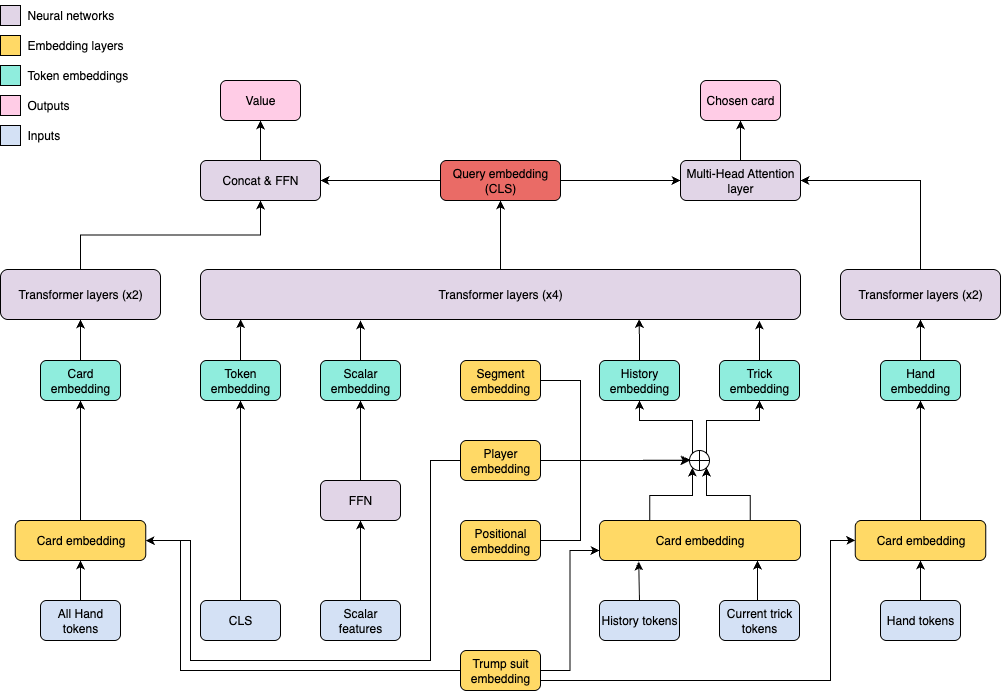 - Segment embeddings: Distinguishing game history from current trick